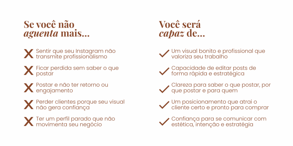 Desculpe a sinceridade, mas será impossível atrair clientes certos e passar confiança se o seu perfil continuar sem clareza, sem padrão visual e sem refletir o valor do que você entrega.
